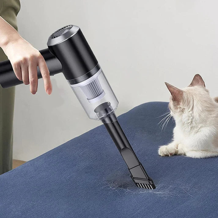 Sin cargar, sin enchufar. Esta aspiradora inalámbrica portátil puede ser tu elección perfecta para la limpieza del hogar, el coche y la oficina.Aspiradora de mano 3 en 1, con boca ancha, boquilla de cepillo y boquilla plana, satisface todas tus necesidades diarias.El depósito de polvo desmontable de 6000 Pa es ideal para tirar la basura de forma rápida y fácil, recipiente y filtro lavables.Batería recargableTamaño pequeño y peso ligero , textura agradable y cómoda de sostener